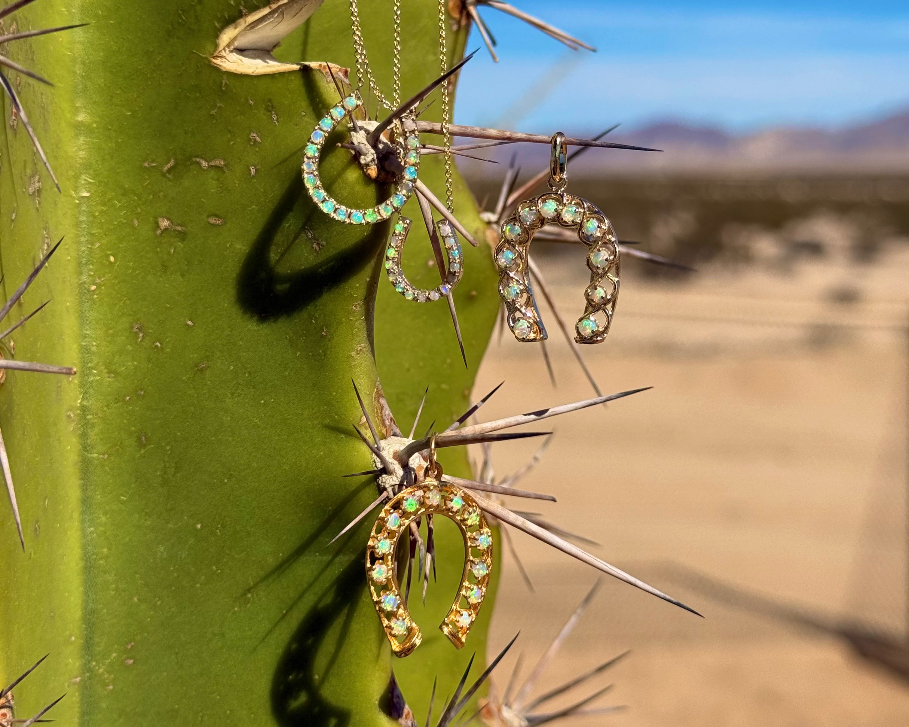 14K Large Opal Horseshoe Station Necklace